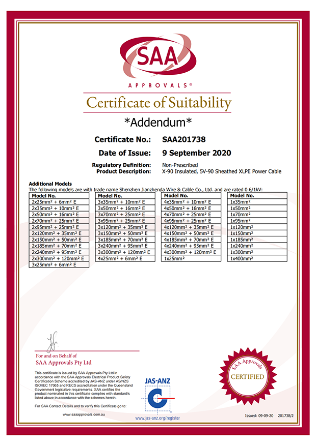 深圳建圳達(dá)電線電纜有限公司,成立于2000年,是一家電線電纜制造商,我們通過(guò)了世界各地不同市場(chǎng)的多數(shù)認(rèn)證,如:CCC、RoHS、CB、SAA、TUV、VDE、PSE、BPS、UL、CSA。我們根據(jù)定制產(chǎn)品不斷更新新的認(rèn)證。經(jīng)過(guò)數(shù)十年的發(fā)展,我們與來(lái)自世界各地的客戶(hù)建立了長(zhǎng)期的合作關(guān)系。我們?cè)?jīng)是菲律賓機(jī)場(chǎng),,柬埔寨的電力站,美國(guó)的醫(yī)院,工廠,埃塞俄比亞的水電站項(xiàng)目。我們是一家值得信賴(lài)的電線供應(yīng)商。